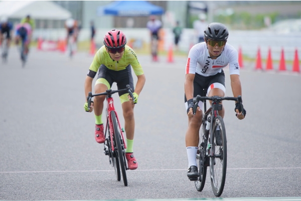 2周の部では大人の集団は牽制気味の中、集団コントロール牽引からのアタックで逃げ、最終ポイントでの一騎打ち。と想定したレース運びが行えて収穫